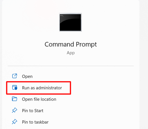 1. Komut istemini açın ve yönetici olarak çalıştırın.