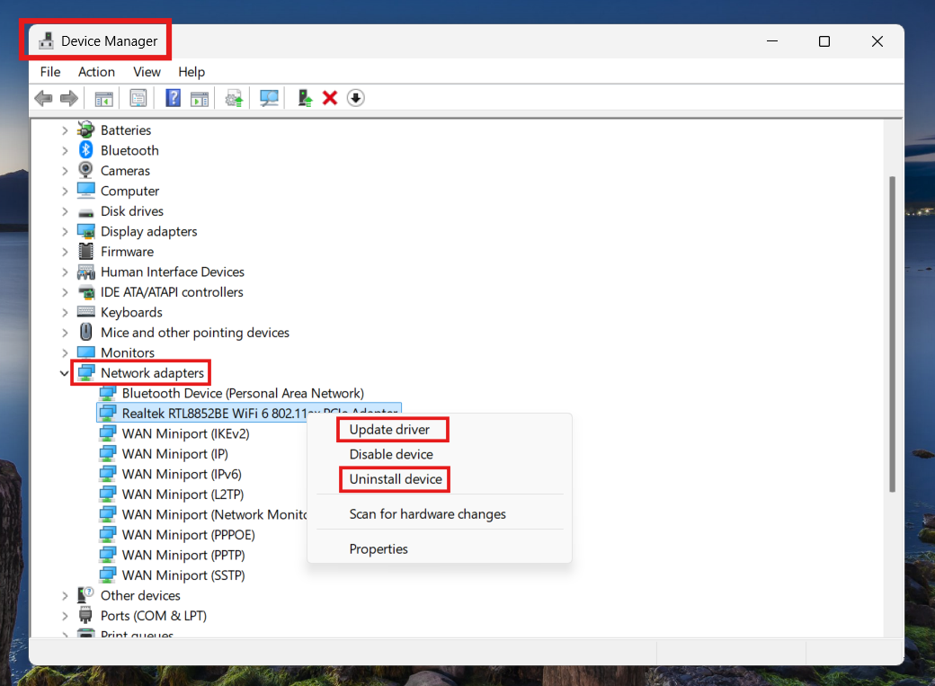 Düzeltme 5: WAN Miniport Bağdaştırıcılarını Yeniden Yükleme