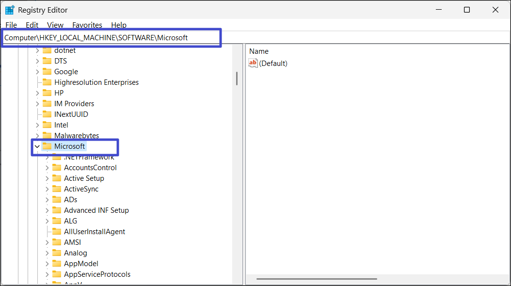 HKEY_LOCAL_MACHINESOFTWAREMicrosoft