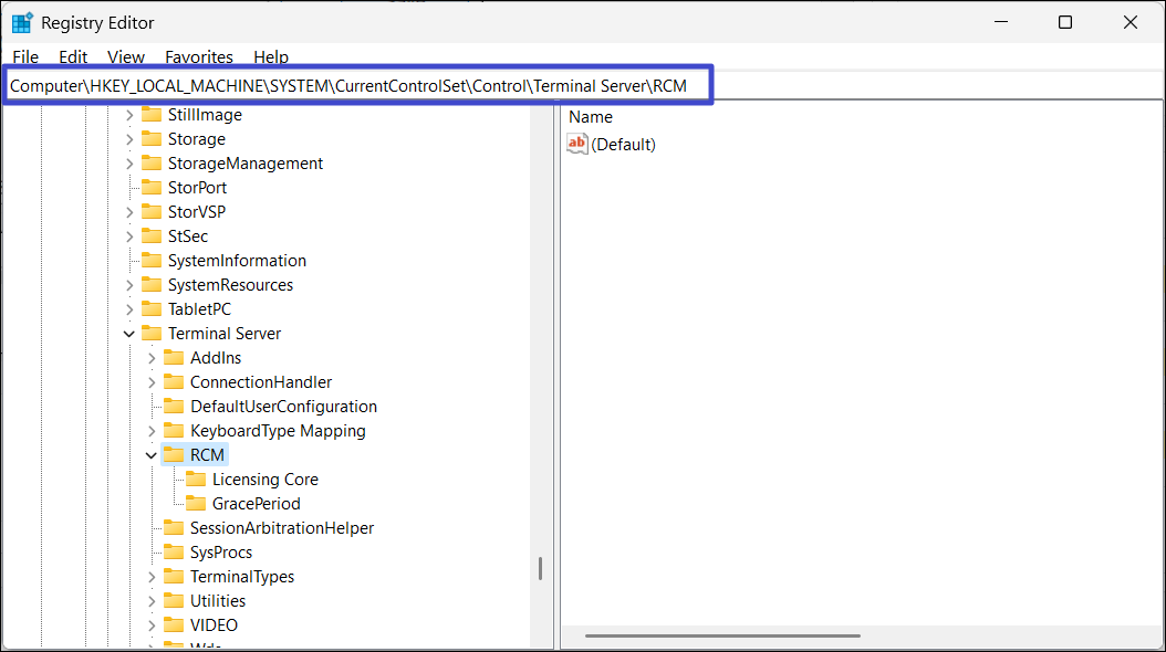 HKEY_LOCAL_MACHINESYSTEMCurrentControlSetControlTerminal ServerRCMcopied