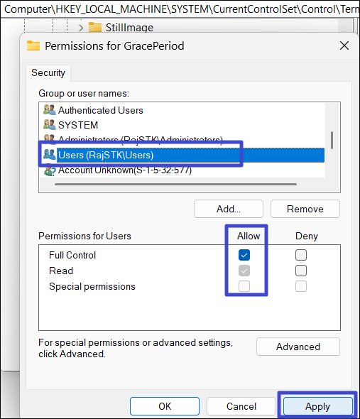Yöntem 3: Graceperiod Kayıt Defteri Anahtarını Sil