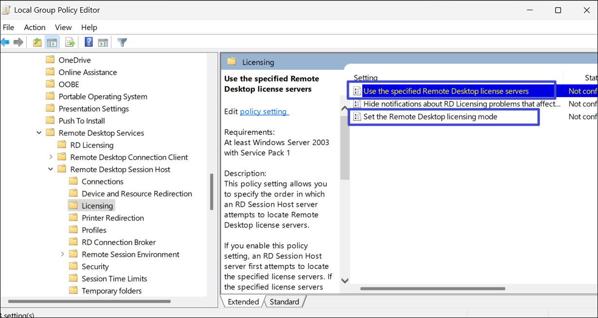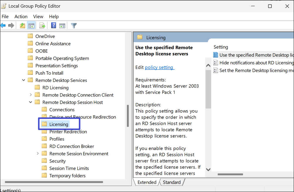 Computer Configuration > Administrative Templates > Windows Components > Remote Desktop Services > Remote Desktop Session Host > Licensing