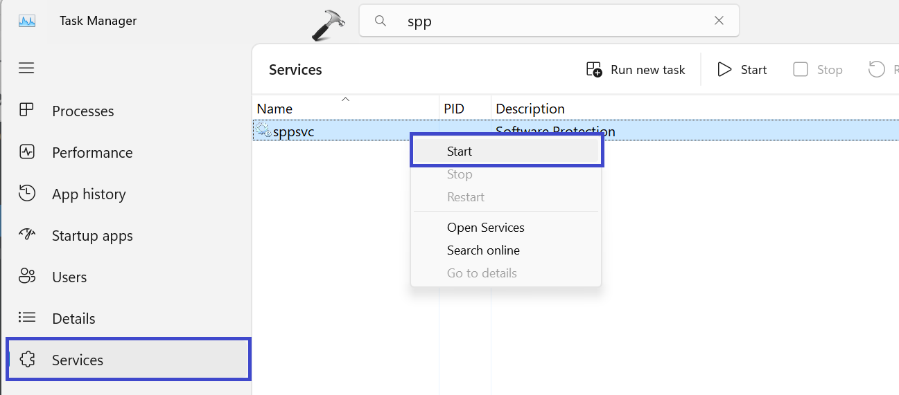 Ağ izinleri verdikten sonra, önceki düzeltmelerde belirtilen yöntemleri kullanarak yazılım koruma hizmetini (SPP hizmeti) yeniden başlatmayı deneyin.