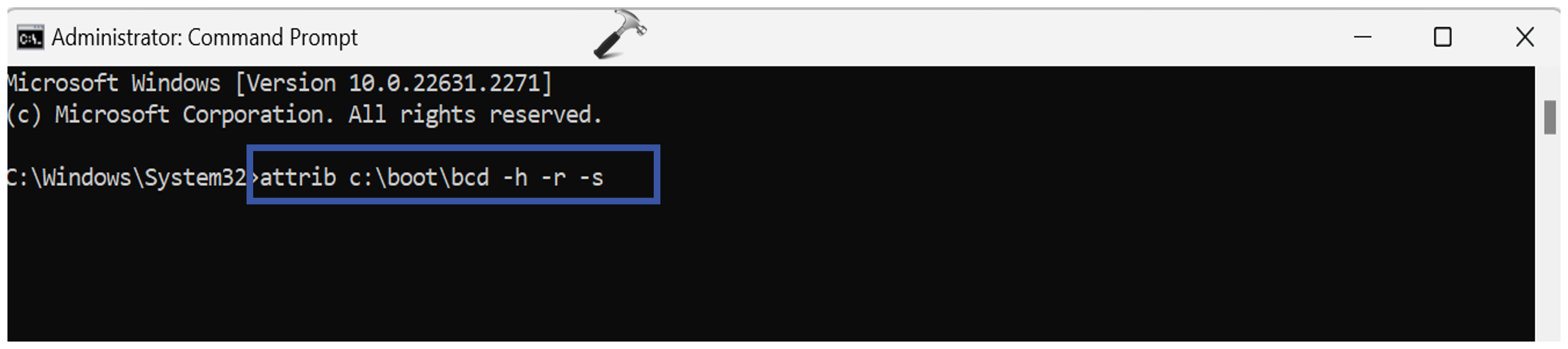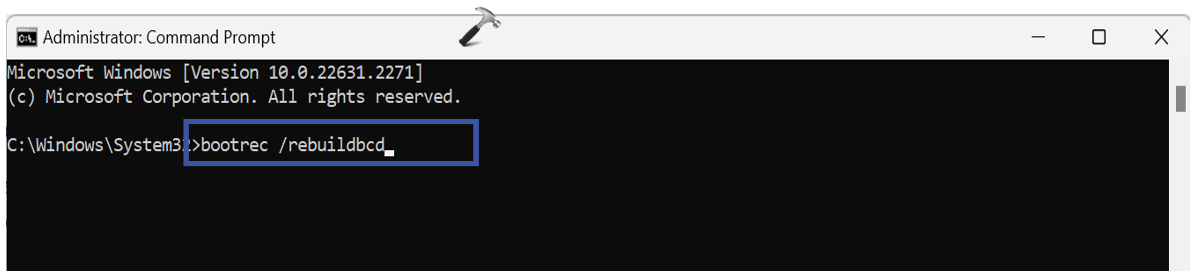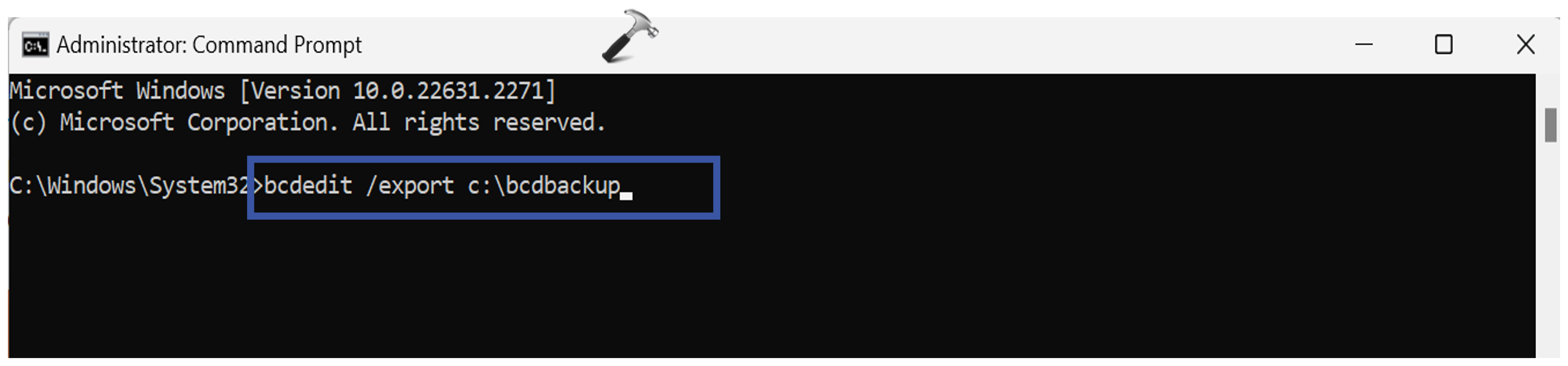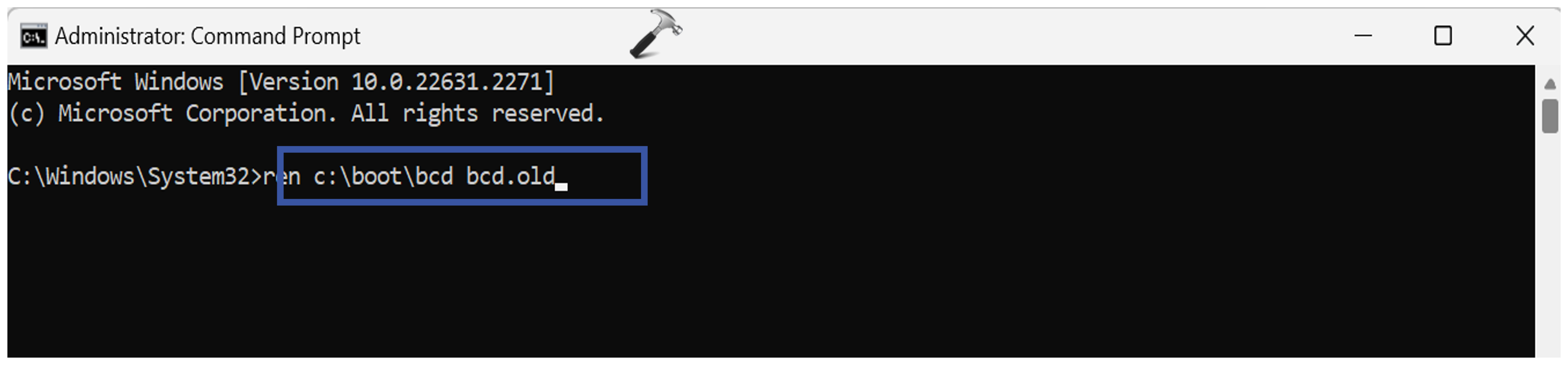 4. Şimdi, BCD'yi yeniden adlandırmak ve yeniden inşa etmek için aşağıdaki komutu kopyalayıp yapıştırın: