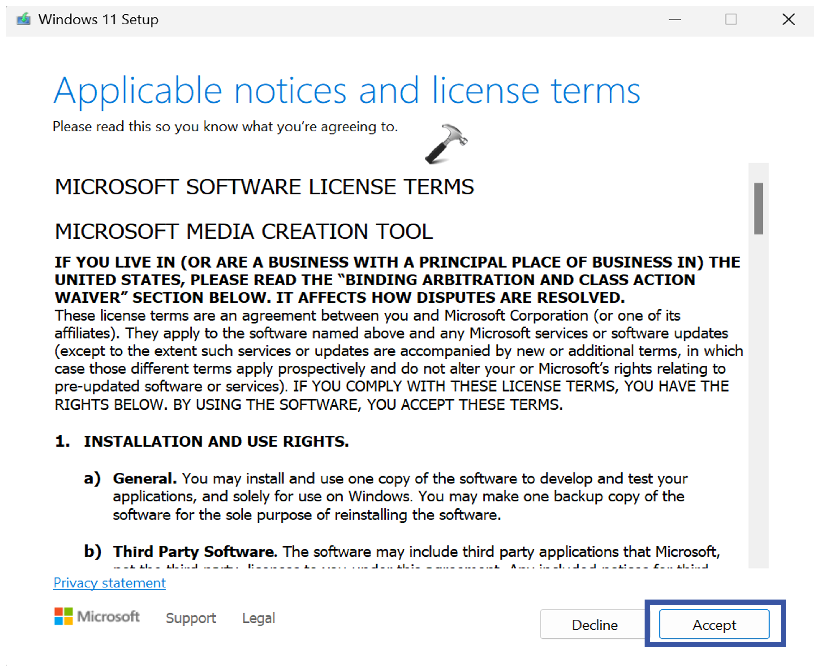 6. Lisans şartlarını kabul edin ve tıklayınSonraki.