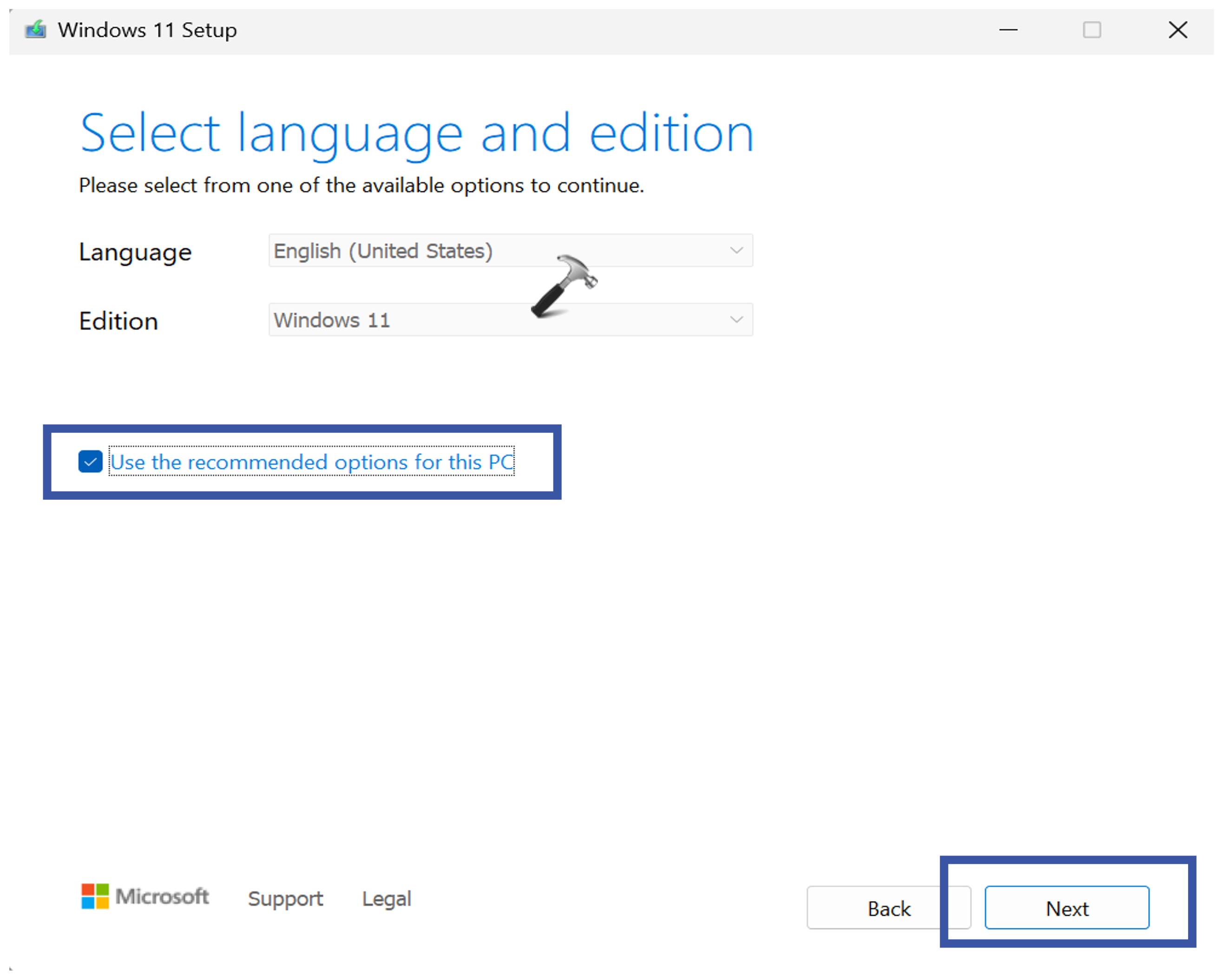 4. Şimdi, Dil ve Sürümü seçin ve ardından “Sonraki".