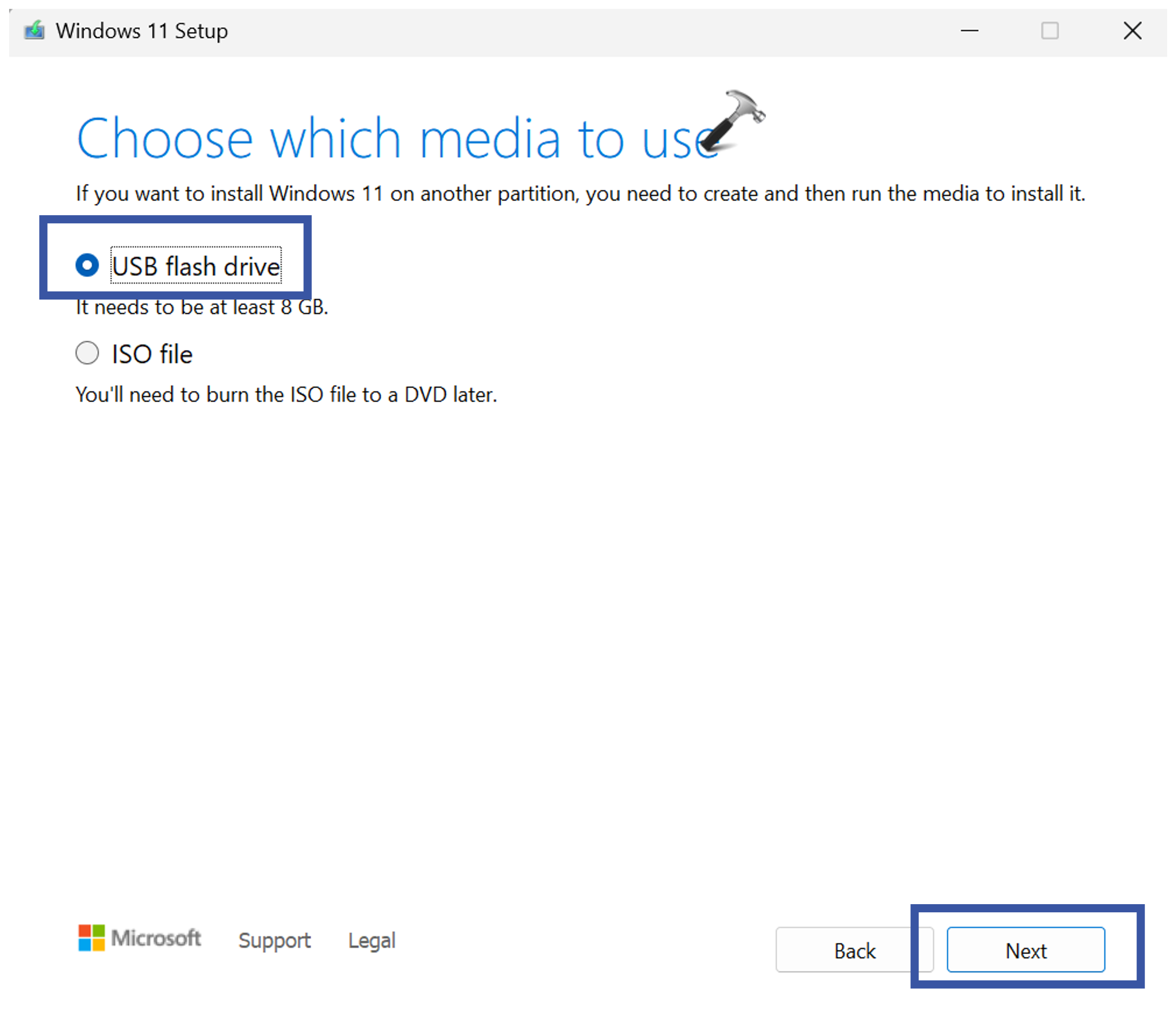 5. Bundan sonra, "Hangi medyayı kullanacağınızı seçin"İstem kutusu görünecek. Seçin"USB Flash Sürücü”Ve tıklayın"Sonraki".