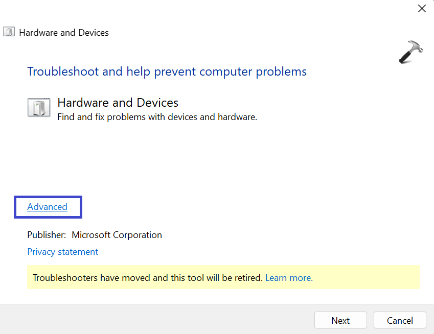 Çözüm 4: Donanım Sorun Giderici çalıştırın