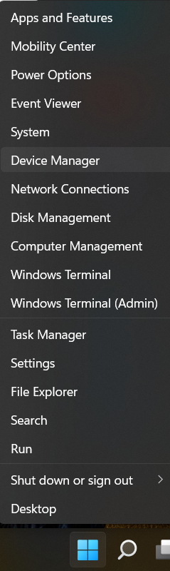1.Sağ tıklayınBaşlangıçve seçCihaz yöneticisi.