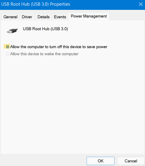 3.AltındaGüç yönetimisekme, yanında bulunan kutuyu işaretleBilgisayarın güç tasarrufu için bu cihazı kapatmasına izin verin. Kontrol edilmeden sonra basınTAMAM.