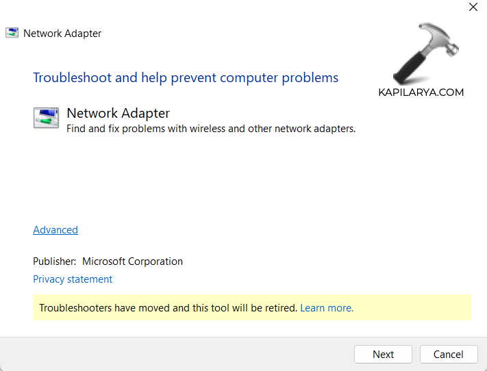 msdt.exe /id NetworkDiagnosticsNetworkAdapter