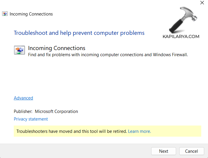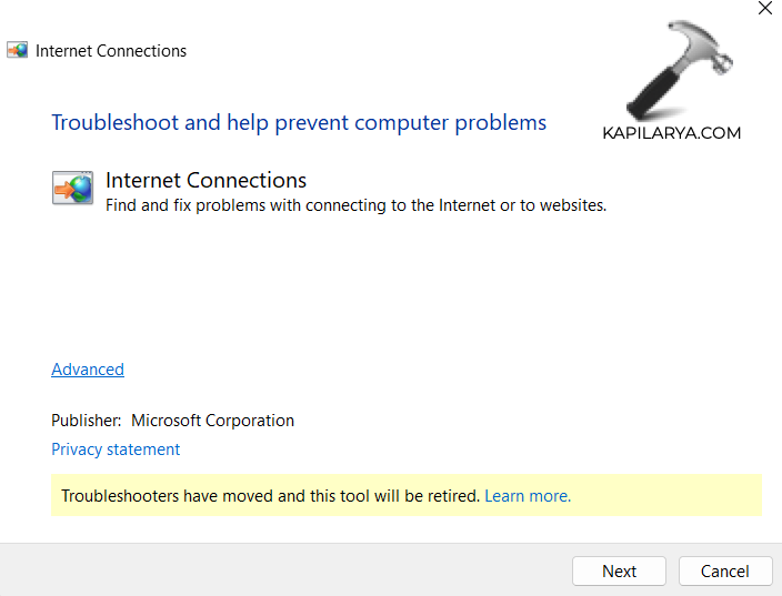 Sorun gidericiyi çalıştırmak için "İleri" yi tıklayın.