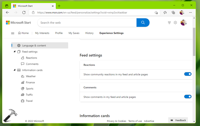 Bu, Microsoft Start web sitesini varsayılan tarayıcınızda açacaktır.