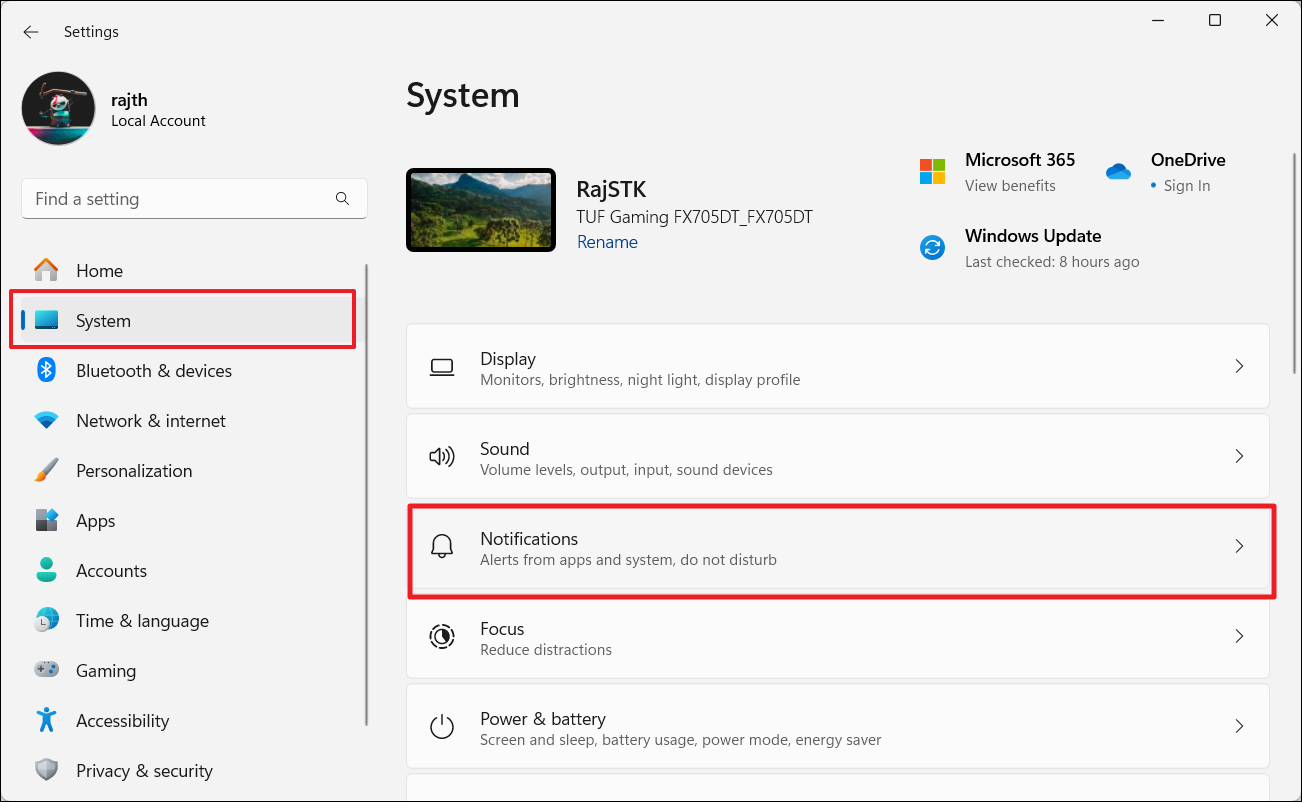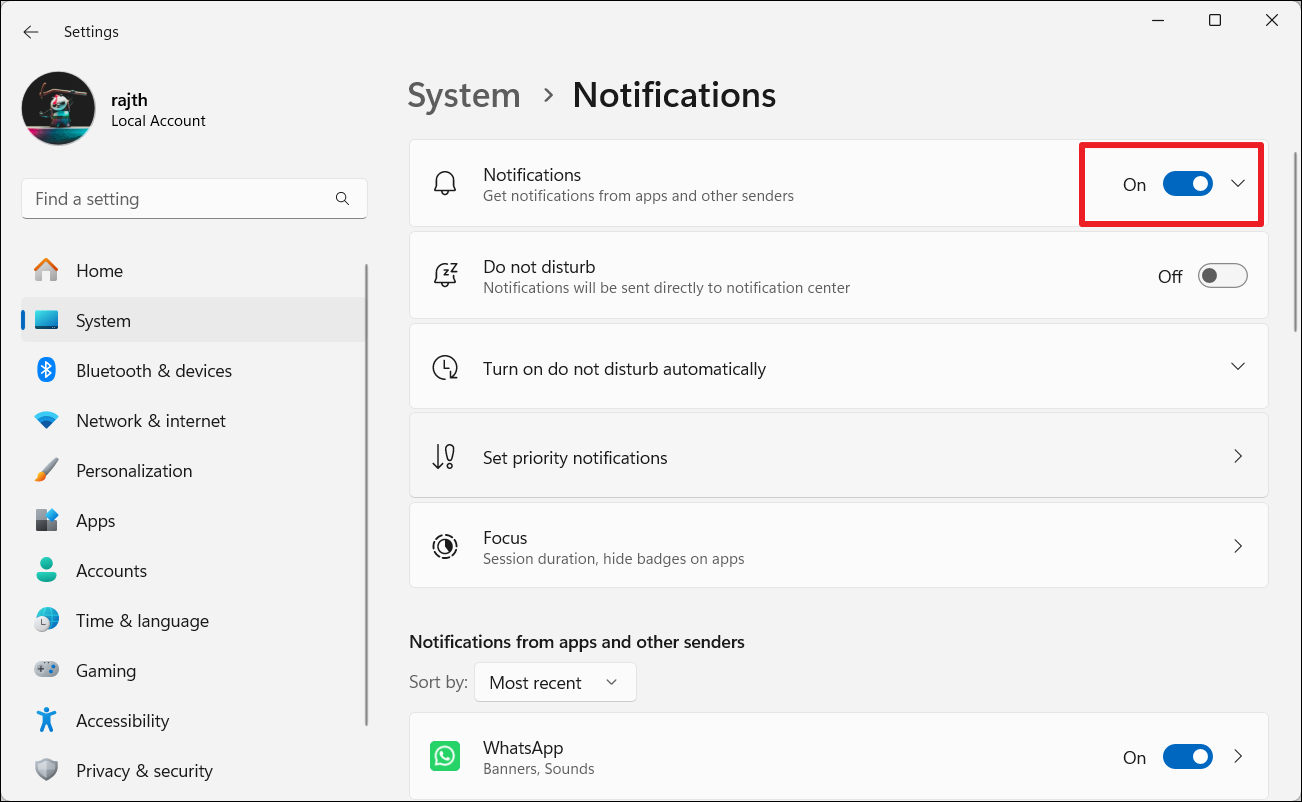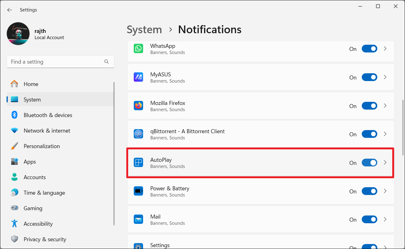1. Windows ayarlarında,Sistem>Bildirimler.
