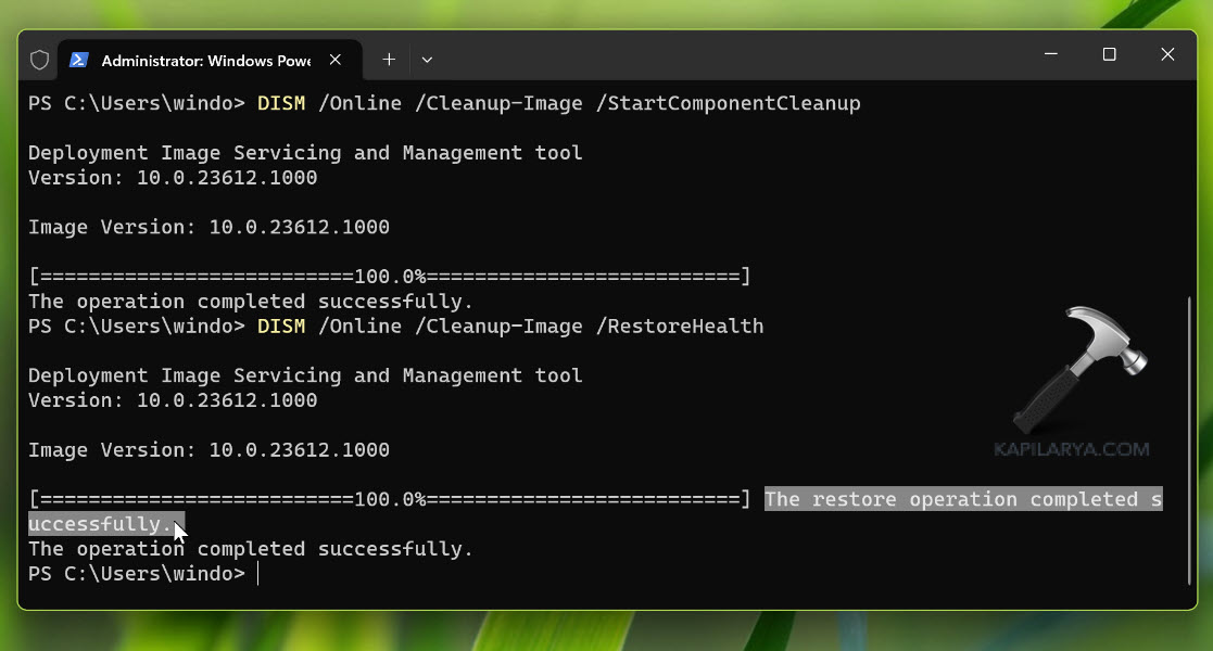 Ardından, yürütDISM /Online /Cleanup-Image /StartComponentCleanupemretmek.