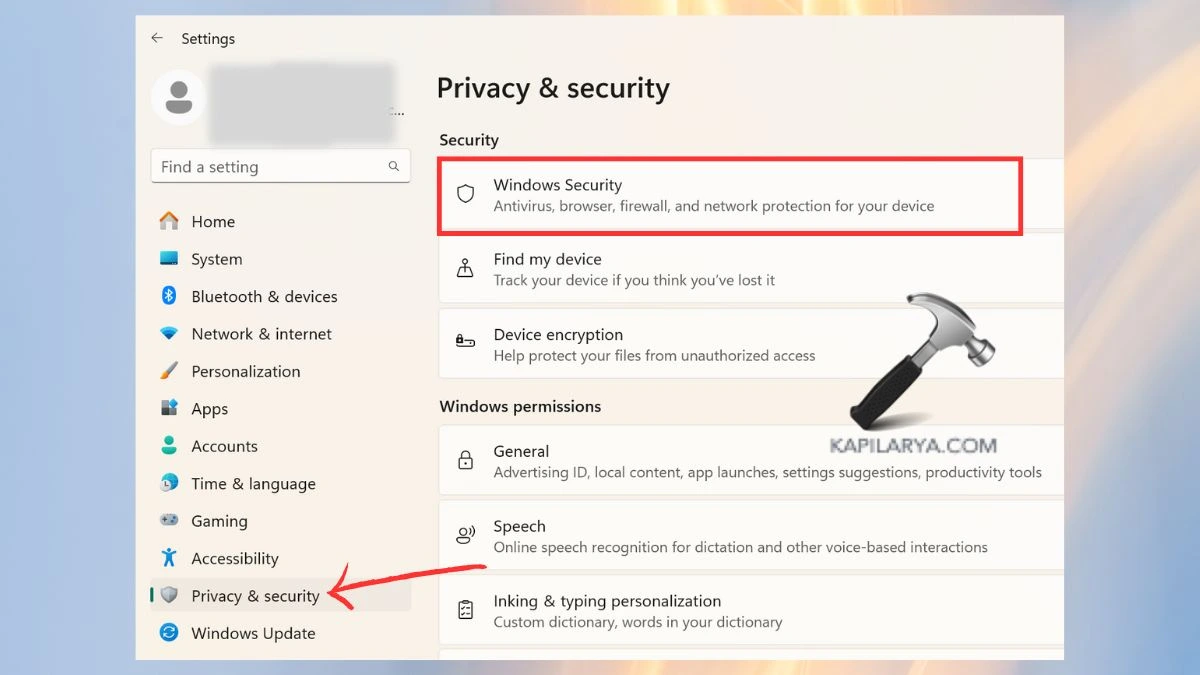 1. Erişim Ayarları> Gizlilik ve Güvenlik> Windows Güvenliği.