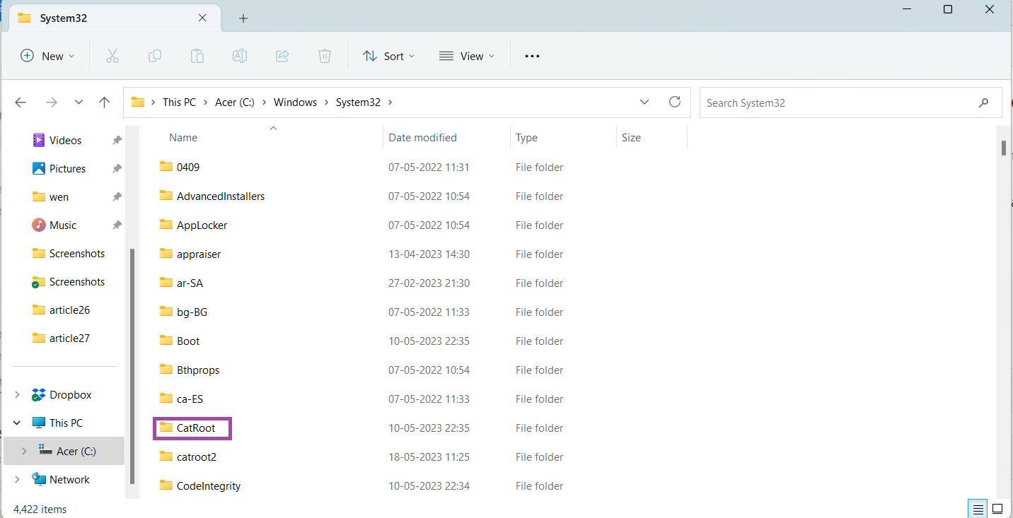 Düzeltme 5: Düzeltme Windows 11 Catroot klasörünü sıfırlayarak bir şey planlandığı gibi gitmedi