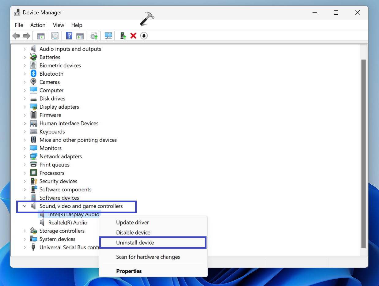 3. Ses cihazına sağ tıklayın ve “Cihazı Kaldır".