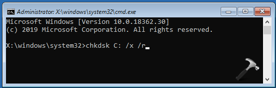 - Tarama hataları görüntülerse, girinchkdsk /rKomut isteminde ve Enter tuşuna basın.