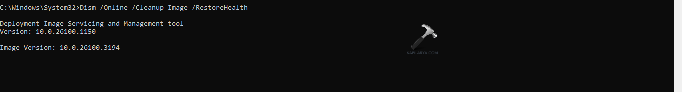 - Diss taraması için aşağıdaki komutu gerçekleştirin:DISS /Çevrimiçi /Temizlik-İmage /RestoreHealth