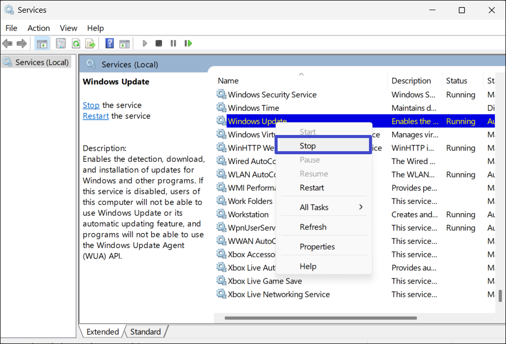 Windows güncelleme hizmetlerini yeniden başlatma sorunu çözmezse, tamamen devre dışı bırakmak CPU kullanımını düşürebilir.