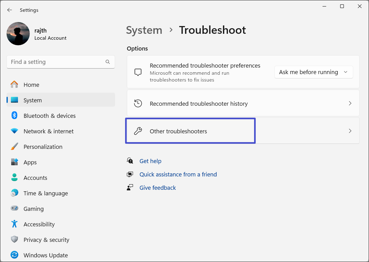 3. Sorun Giderme Ayarları sayfasında “Diğer Sorun Gidercileri".