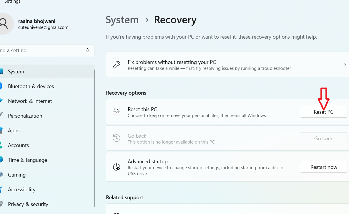 - SeçmeSistemVe sonra tıklayınİyileşmek.