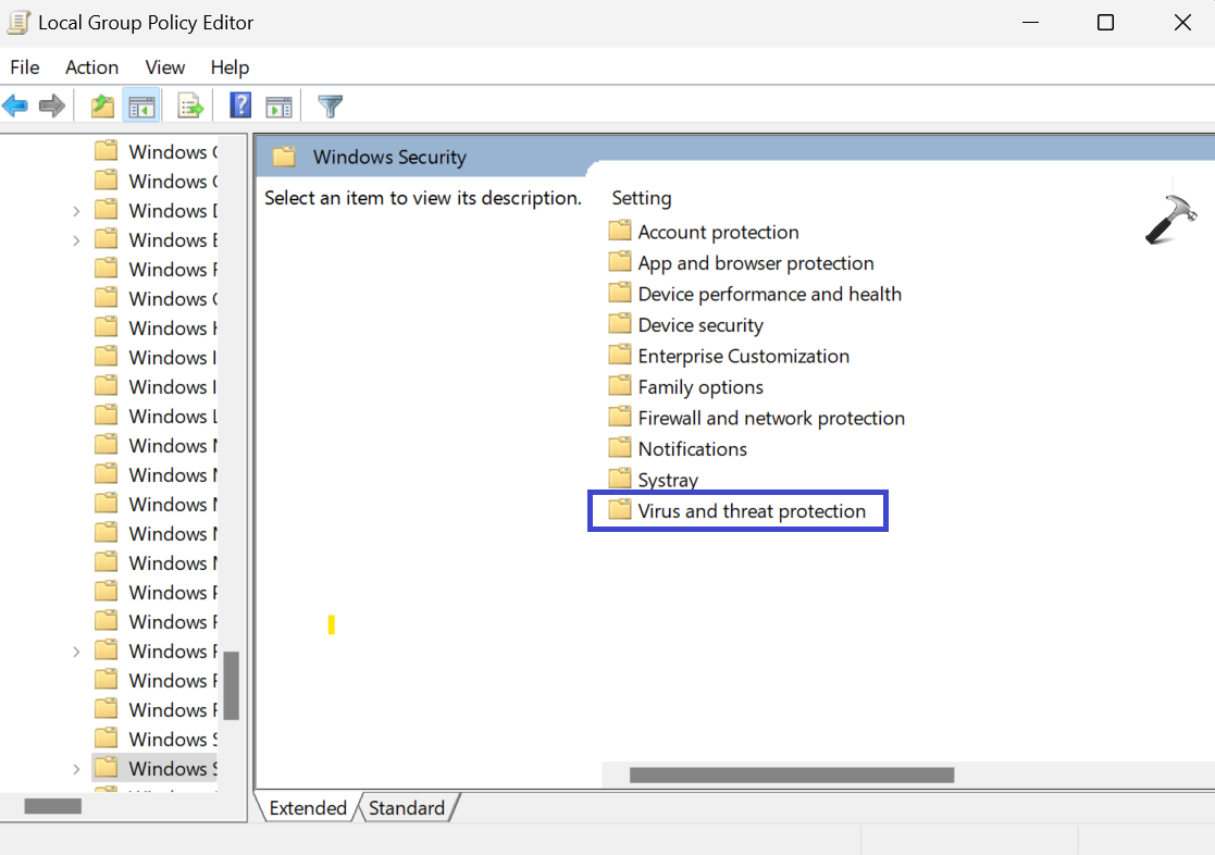Computer ConfigurationAdministrative TemplatesWindows componentsWindows SecurityVirus and threat protection