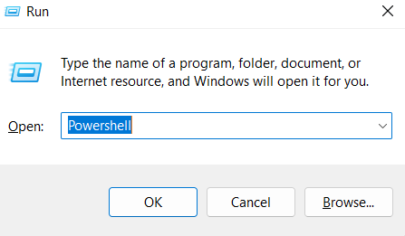 1 - AçıkKoşmakKlavye kısayoluna basarakWin + R.GirmekPowershellKutuda ve basınCtrl + Shift + Enter.