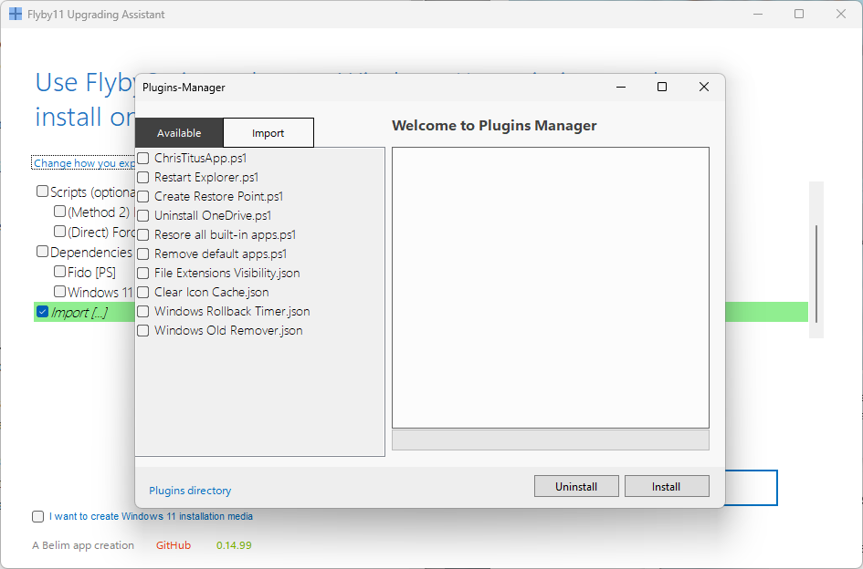 İkinci büyük ekleme bir eklenti sistemidir. Bu, bir eklenti sistemine sahip geliştiricinin ilk uygulaması değildir. Ana arayüzde içe aktarma seçeneğini seçerek etkinleştirirsiniz.