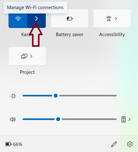 2. WiFi simgesinin yanında gösterilen oku tıklayın.