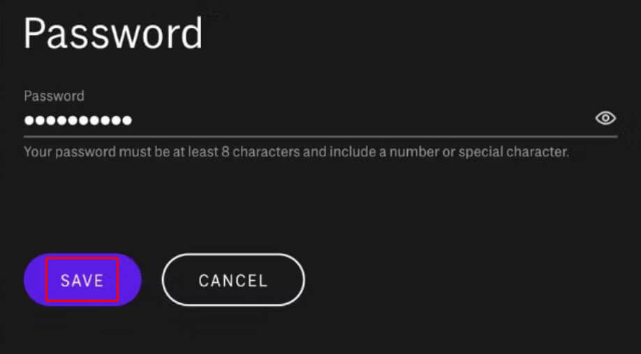 - İstendiğinde yeni bir şifre girin ve dokununKaydetmekbittiğinde.