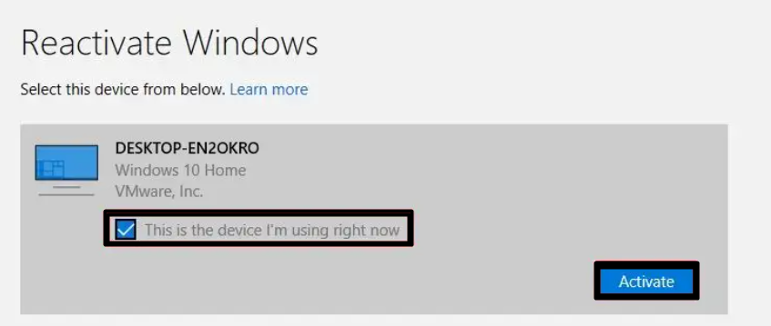 5.Kontrol etŞu anda kullandığım cihaz buonay kutusu ve üzerine tıklayınEtkinleştirmekSeçilen bilgisayardaki pencereleri yeniden etkinleştirmek için.