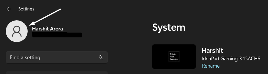 1.Başlamak için açAyarlar ProgramıVe tıklayınProfil simgesiekranın sol üst köşesinde.