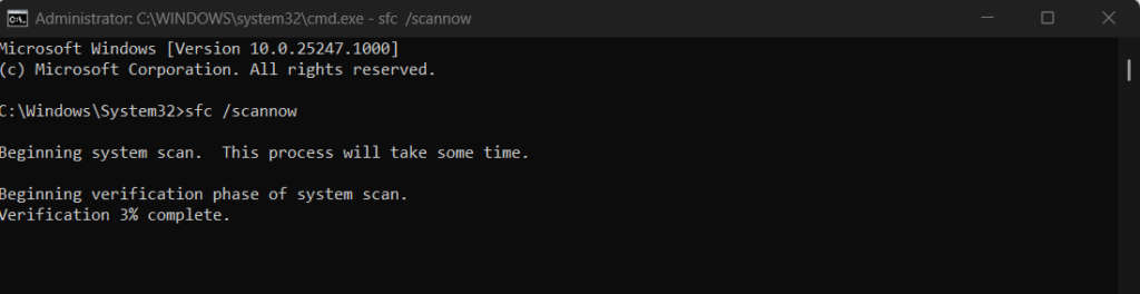 Kırık güncelleme bileşenini SFC taramasıyla kolayca onarabilirsiniz. Sistem Dosyası Denetleyicisi, sistemdeki bozuk dosyaları tarar ve bunları sistemde depolanan aynı dosyanın önbelleğe alınmış bir kopyasıyla değiştirir. SFC taramasını çalıştırmak için aşağıda belirtilen adımları izleyin: