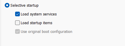 3.İçindeSistem yapılandırmasıBölüm, seçinSeçici başlangıçradyo düğmesi ve sonrayok etmek.Başlangıç öğelerini yükleseçenek.