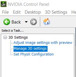 - AltındaBir Görev Seçin, tıklayın3D ayarları yönetin.