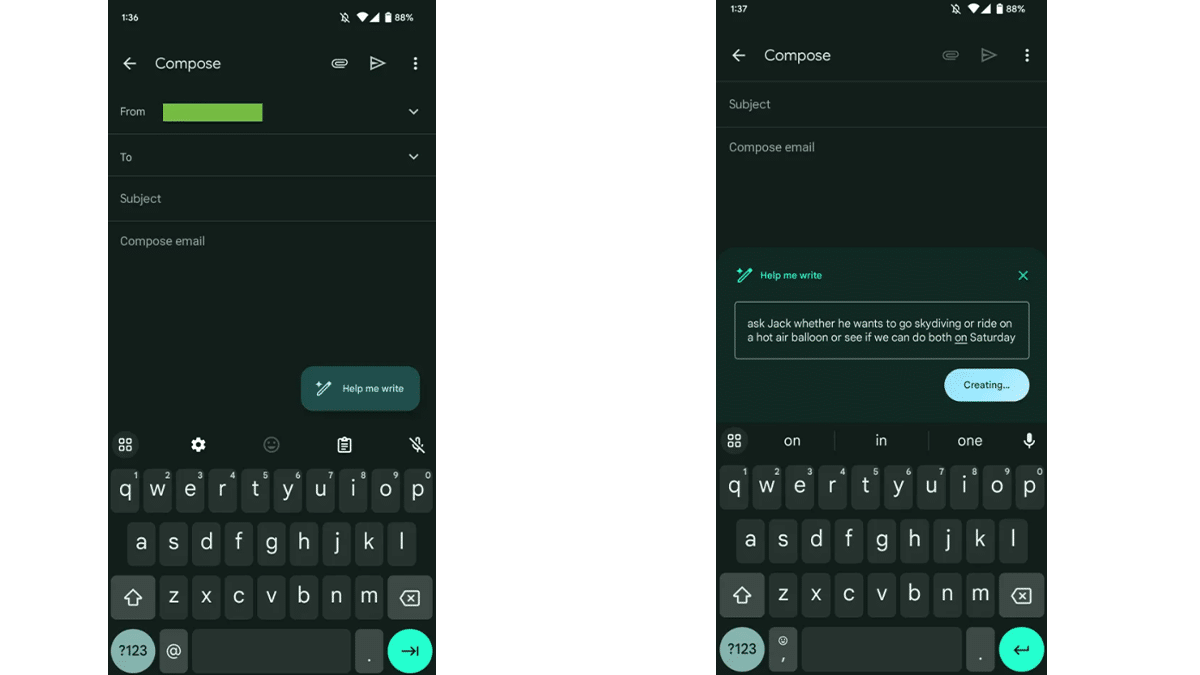 Çalışma Alanı Laboratuarları programına kayıtlı kullanıcılar “Yazmamı Yardım” seçeneğini görecektir. Özelliği kullanmak için kullanıcıların Gmail uygulamasını açmaları ve yeni bir e -posta oluşturmaya başlaması gerekir. Ekranın altında, "Yazmama Yardım Edin" etiketli yeni bir düğme görecekler. Bu düğmeye dokunduklarında, hakkında yazmak istediklerinin kısa bir açıklamasına girmeleri istenir. Örneğin, “Randevumu iptal etmem gerekiyor” veya “Kendimi tanıtmak için yazıyorum” girebilirler. Create'e vurun ve tam bir taslak görünecektir.