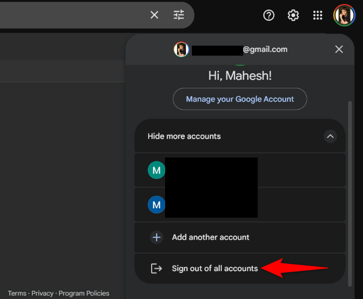 - Seçmekoturumu KapatveyaTüm hesaplardan çıkış.
