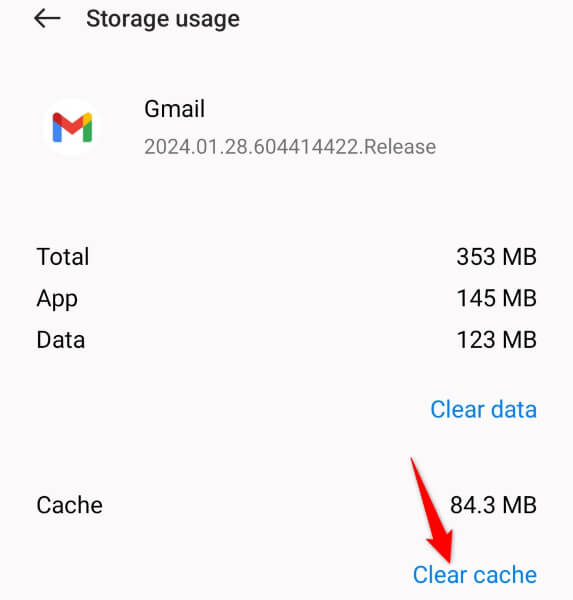 Sorun devam ederse, Android telefonunuzdaki Gmail uygulamasının önbellek dosyalarını temizleyin. Bu, uygulamanın geçici dosyalarını siler, bu da bazen birçok uygulama problemini düzeltmeye yardımcı olur. Bu prosedürü yalnızca bir Android telefonda gerçekleştirebileceğinizi unutmayın.