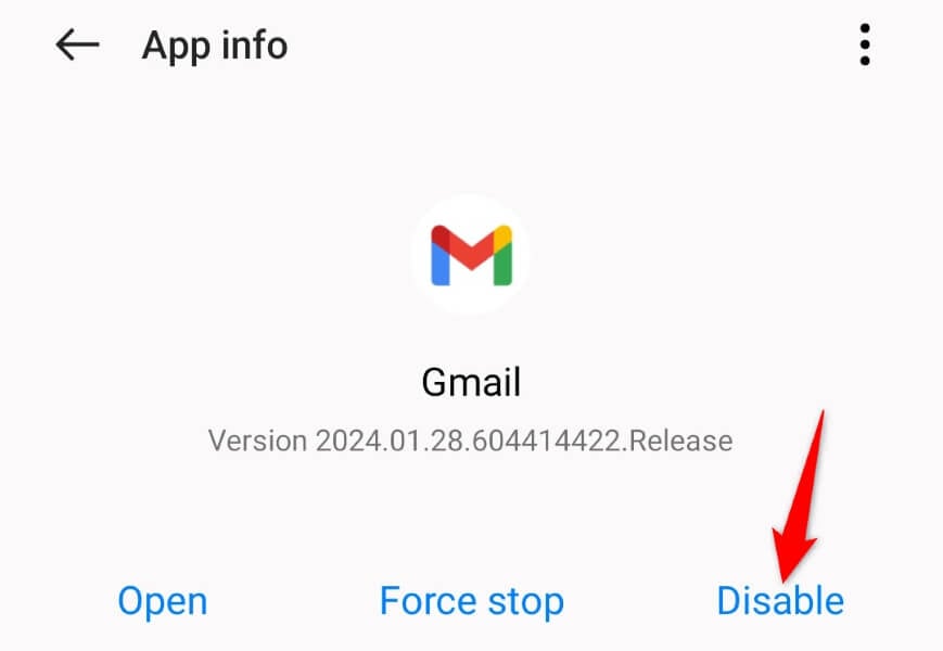 Gmail'in çoğu Android telefonda bir stok uygulaması olduğunu unutmayın, bu nedenle telefonunuzun uygulamayı kaldırmanıza izin vermemesi muhtemeldir. Bu durumda, sorunu çözmek için uygulamayı devre dışı bırakın ve yeniden etkinleştirin.