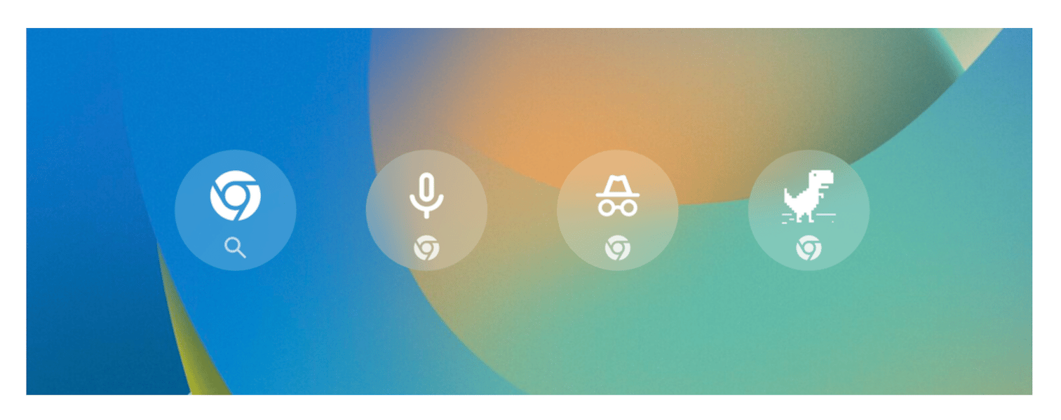 - Dört YeniKrom widget'larıKullanıcıların Chrome tarayıcısını başlatmasına, sesle aramaya başlamasına, tarayıcıyı gizli modda açmasına veya Dino oyununu tek bir muslukla oynatmasına izin verecektir.