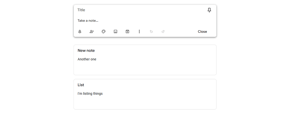 Google Keep'in web sürümünde, dijital notlar en üstte en çok oluşturulan nota ile bir "yem" veya listede görünür. Bir not eklemek için,Bir not al…bölüm ve yazmaya başlayın.