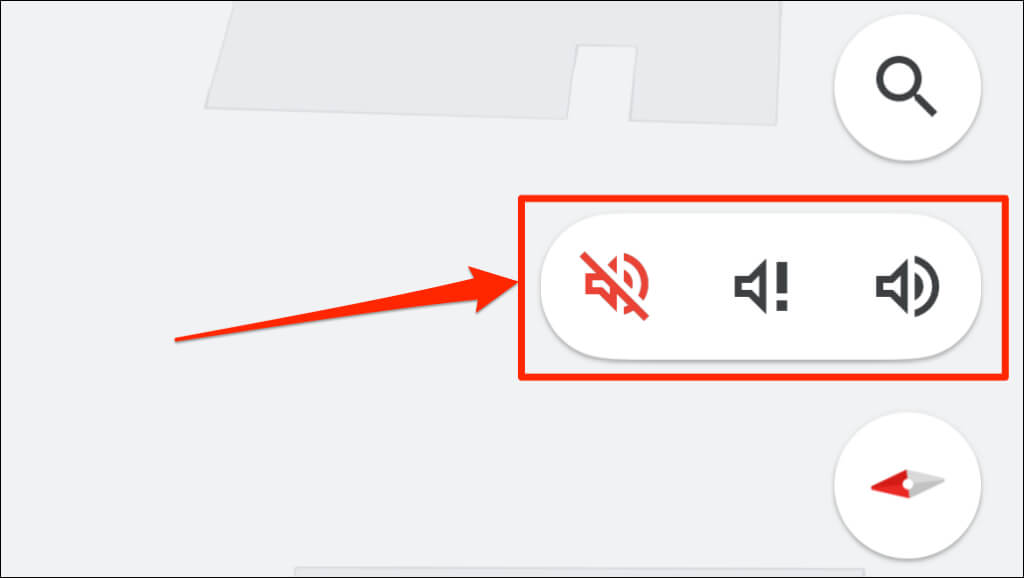Google Haritalar bir hedefe gitmeye başladığında,hoparlör simgesisağ üst köşede. SeçmeBitmemiş(normal hoparlör simgesi)Google Haritaların tüm gezinme uyarılarını konuşmasını sağlamak için aşırı sağ köşede.