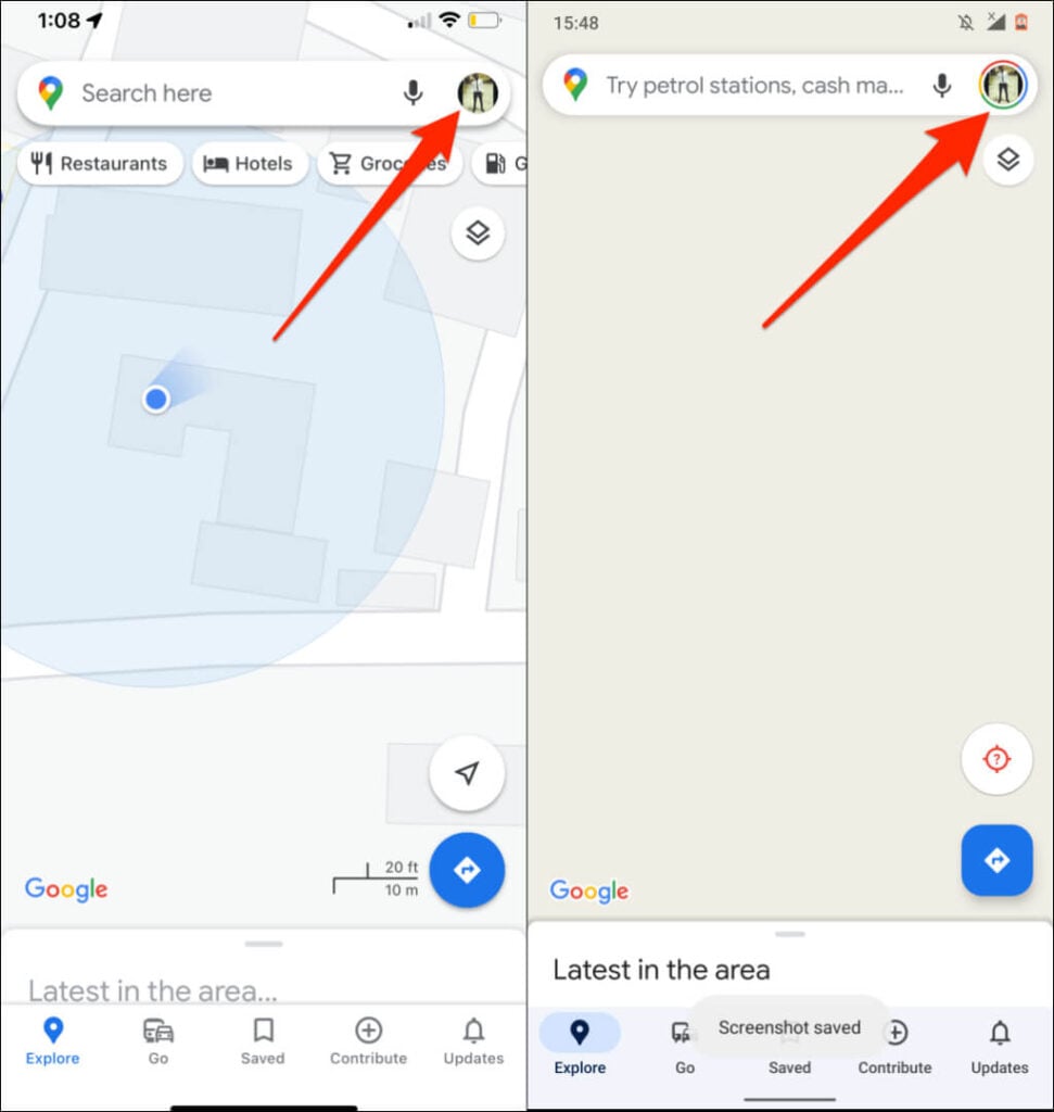 - Google haritalarını açın veprofil resmiveya sağ üst köşedeki baş harfleri.