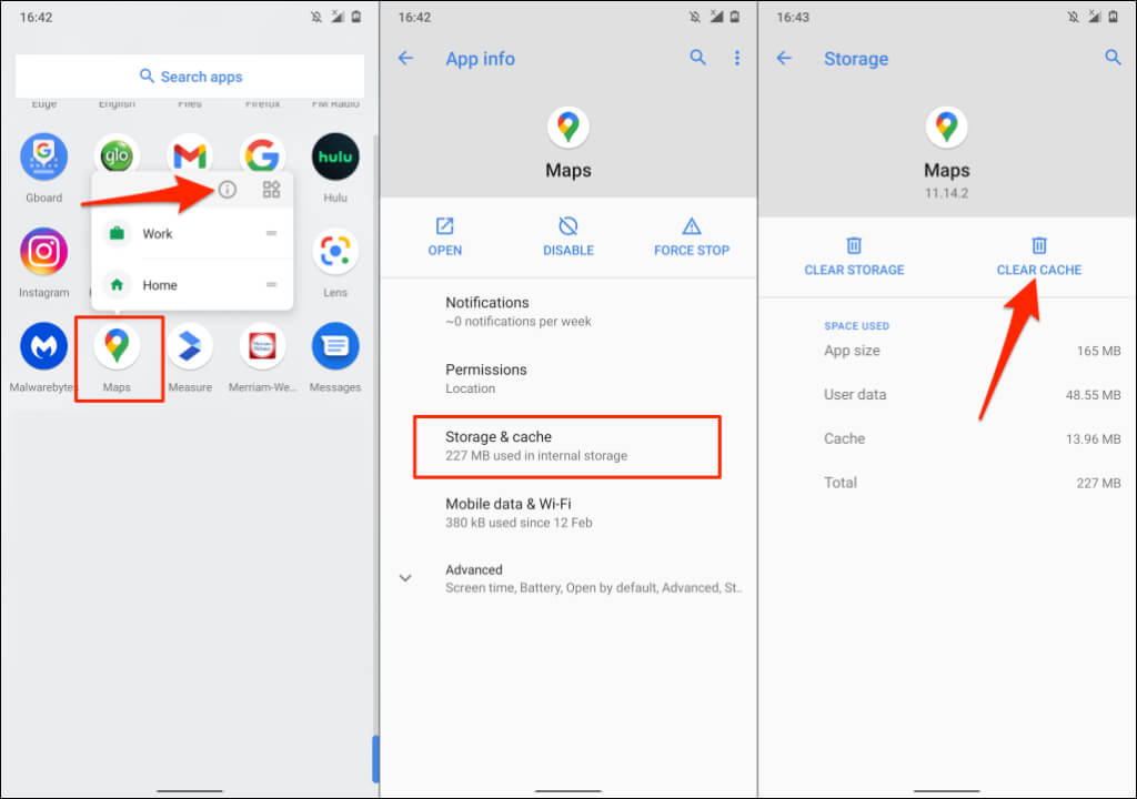 Bir uygulamanın önbelleğini cihazınızdan kaldırmak, özellikle önbellek dosyaları arızalı veya yozlaşmışsa, performans aksaklıklarını düzeltebilir. Haritaları kapatın veya kapatın ve aşağıdaki adımları izleyin: