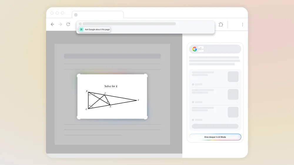 Google'a bu sayfayı sorun- Chrome adres çubuğunda, herhangi bir web sitesinde veya PDF'de vurgulanan içeriği özetleyen ve AI modu aracılığıyla sonraki soruları öneren yeni bir seçenek.