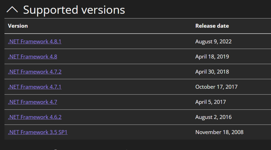 - Yüklemek istediğiniz .NET Framework sürümünü seçin.