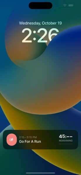 İOS 16.1 ile yapılandırılmış, kilit ekranınızda yeni bir canlı etkinlik geri sayımı gösterecektir. İPhone 14 Pro Max kullanıcıları için, görevin kalan süresi dinamik adada gösterilecektir.