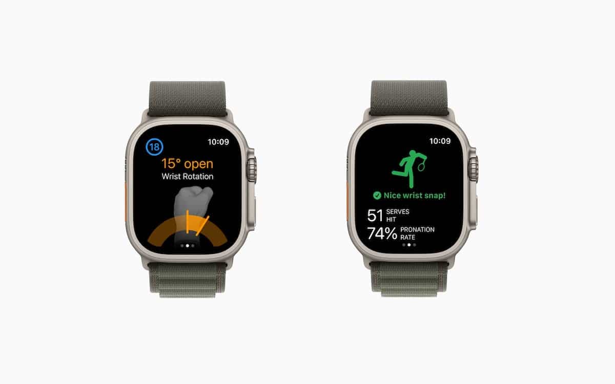Üçüncü taraf uygulama geliştiricileri, sırasıyla hizmet pronasyonu ve golf salınımlarının bükülme hareketini kullanarak SwingVision ve GoldShot uygulamaları gibi yeni deneyimler yaratmak için Apple Watch Serisi 8'deki sensörlerin yüksek frekanslı hareket verilerine ve ultra benzeri hız ve ivmeye erişebilecekler.